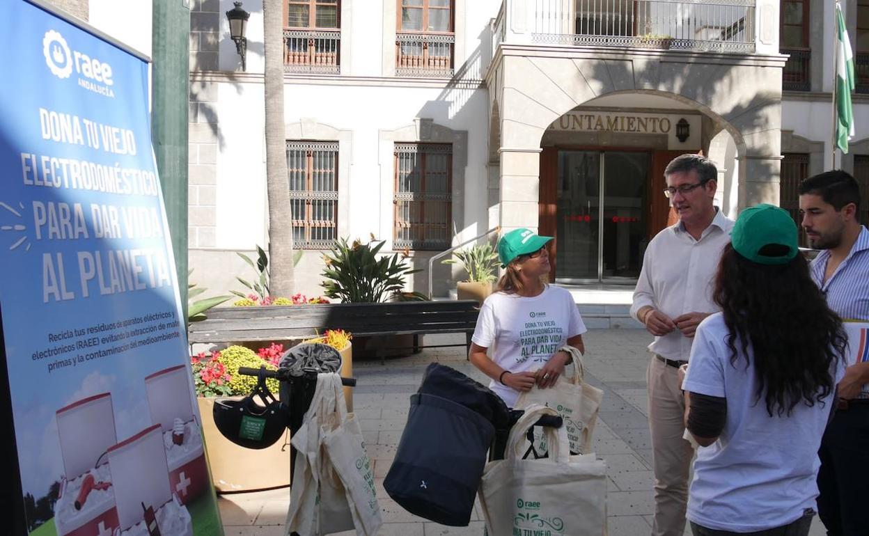 «Todos sabemos dónde tirar vidrios, papeles, envases, cartón, pero no todo el mundo tiene claro dónde debe desechar los residuos de aparatos eléctricos y electrónicos, los llamamos RAEE, de ahí la importancia de esta campaña informativa», subrayó el alcalde, Manuel Cortés, durante su visita al expositor.