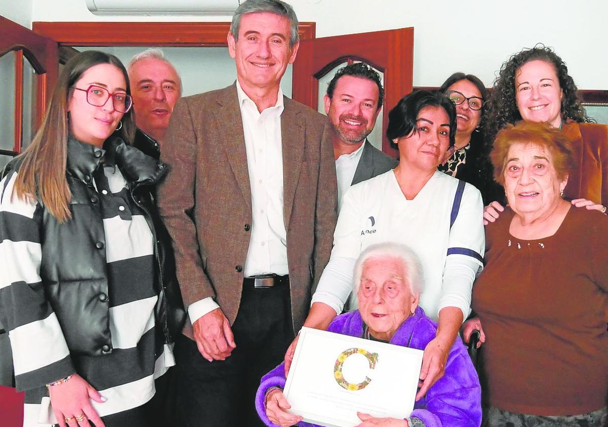Es la usuaria más longeva del servicio a domicilio y sus familiares destacan de ella su «energía y estupendo estado de salud»