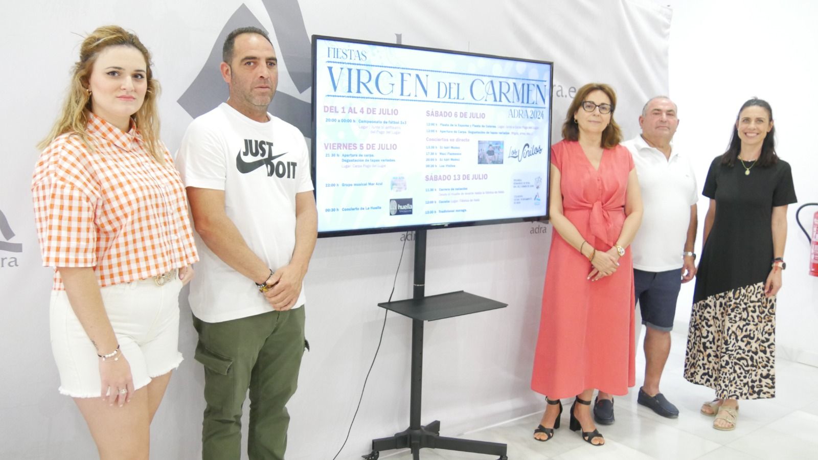 La programación diseñada por la Hermandad de la Virgen del Carmen, con el apoyo del Ayuntamiento de Adra, comenzará el 1 de julio con un campeonato 3x3 de fútbol. Se extenderá hasta el día 4 y se desarrollará de ocho de la tarde a doce de la noche. El día 5 se abrirá al público la carpa con una «degustación de tapas variadas». A partir de las diez de la noche, sonará el grupo musical 'Mar Azul' y, a partir de las doce y media, el concierto de 'La Huella'.
