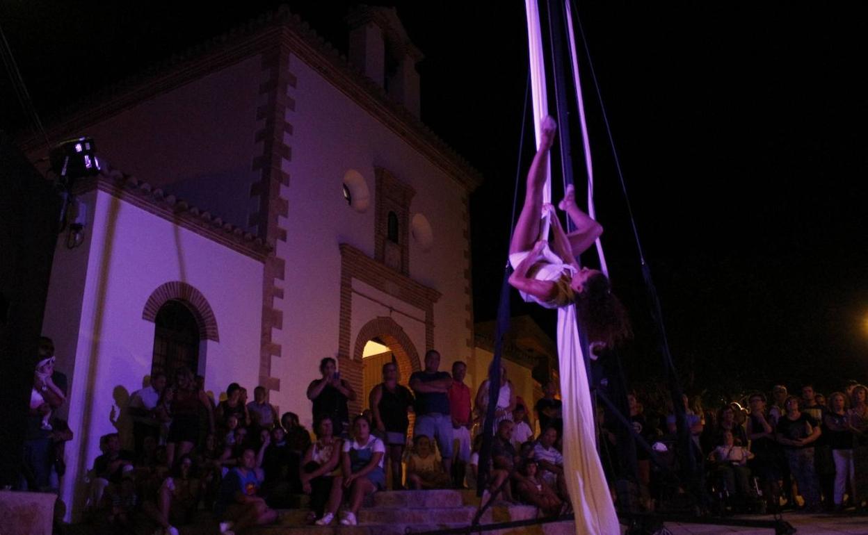En el patio del Molino del Lugar, a las diez y media de la noche, habrá teatro a cargo de Adrastea. Media hora después, Zarrita y el Niño de la Fragua sonarán en la ermita de San Sebastián y Ana Querol, casi al unísono, en el Torreón Olvera. A las once y media de la noche, la actividad continúa con un espectáculo de danza vertical en la plaza del Centro Cultural, que volverá a repetirse pasada la una de la madrugada. En este mismo escenario, el Mago Marín repetirá su espectáculo de malabares.
