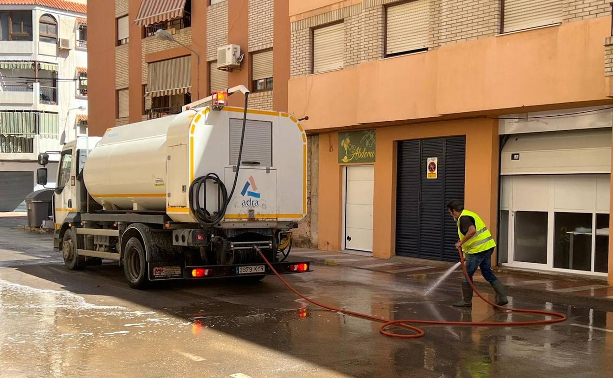 Adra pone en marcha un plan de baldeo intensivo y prohíbe el estacionamiento de vehículos