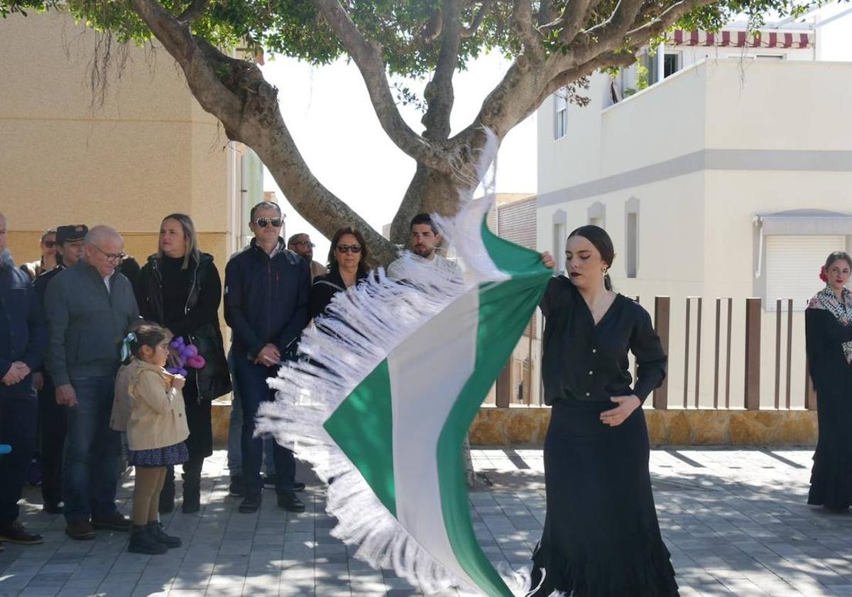 La última cita de esta jornada ha tenido lugar en la barriada de La Curva, en su plaza Andalucía. Los niños y niñas han disfrutado, también en este lugar, de actividades de animación infantil, así como de una degustación de buñuelos, con la colaboración de la Asociación 'Malvasía', y el reparto de pulseras con la bandera de Andalucía. De nuevo, se ha celebrado un acto institucional con el discurso del alcalde, la izada de la bandera y el himno de la Comunidad Autónoma Andaluza con el canto de Valarino, además de la actuación de la Escuela Municipal de Danza 'Zambra'.