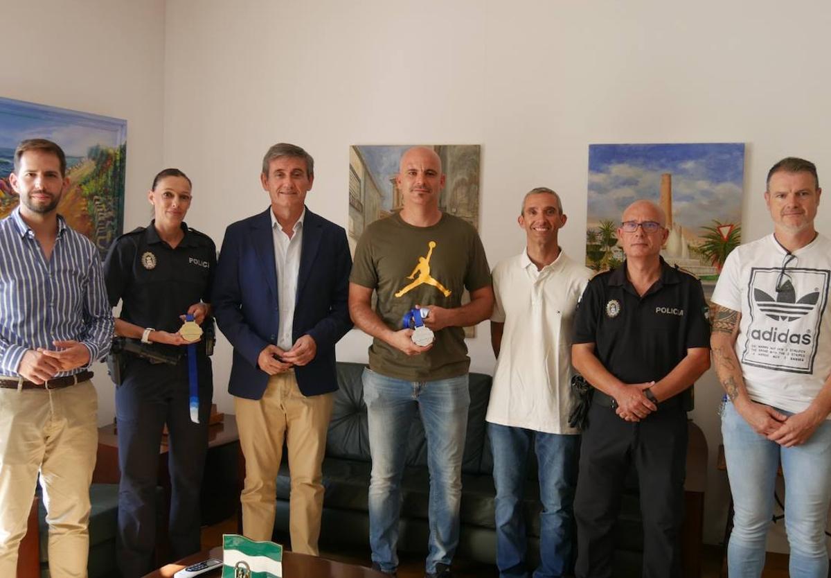 El primer edil ha aprovechado para darles la enhorabuena por sus triunfos individuales y les ha agradecido «llevar Adra a lo más alto en estos premios». Uno de los participantes ha sido la agente María del Carmen González, ganadora del primer premio en ciclismo de montaña y cuarta posición en carrera de media distancia. Su compañero, Ángel Sebastián Parrilla, ha conseguido la plata en la modalidad de pádel. Por su parte, Mariano Pérez, en la modalidad de Crossfit ha quedado en cuarto lugar, y Sergio Almendros, séptimo en triatlón y décimo sexto en ciclismo.