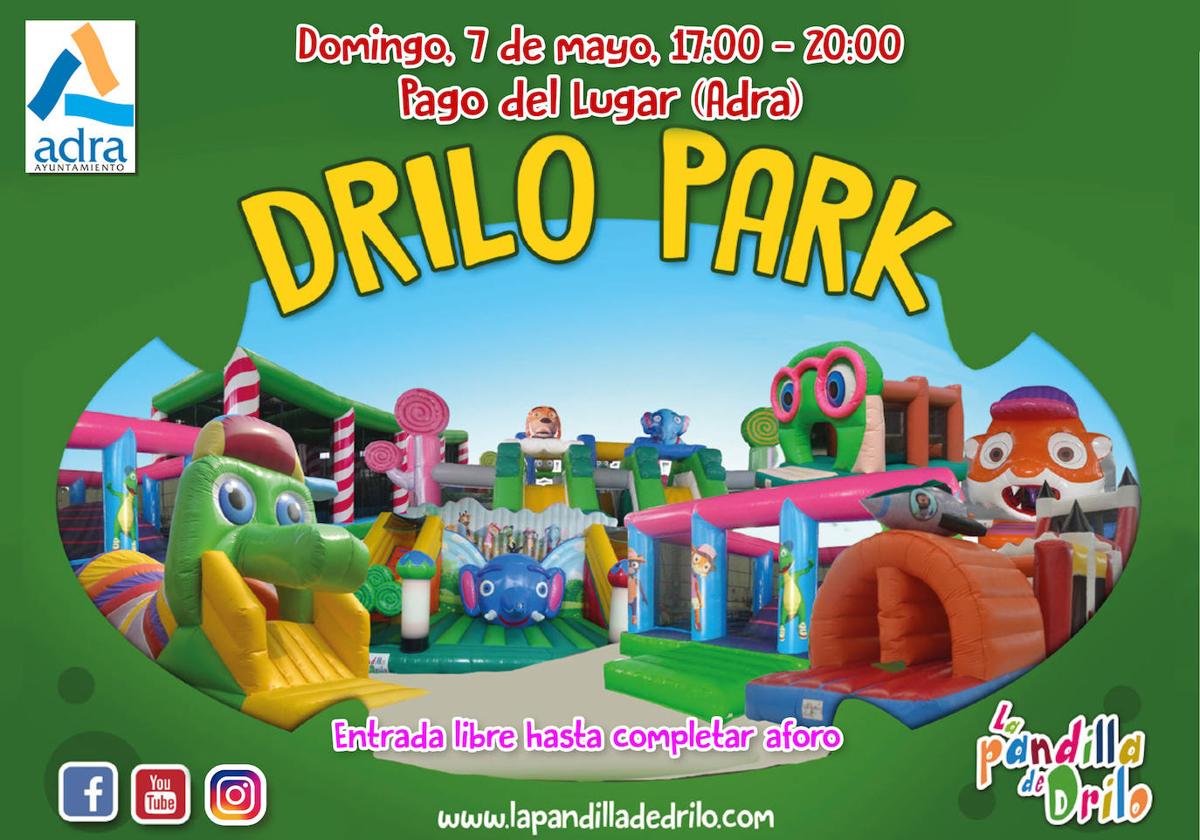 El Pago del Lugar de Adra estará repleto de elementos de juego infantil este domingo con 'Drilo Park'. El parque estará abierto de cinco a ... ocho de la tarde y la entrada es gratuita hasta completar aforo. El momento más esperado será a las ocho de la tarde con el 'El Show de la Pandilla de Drilo', una producción de Andrés Meseguer.