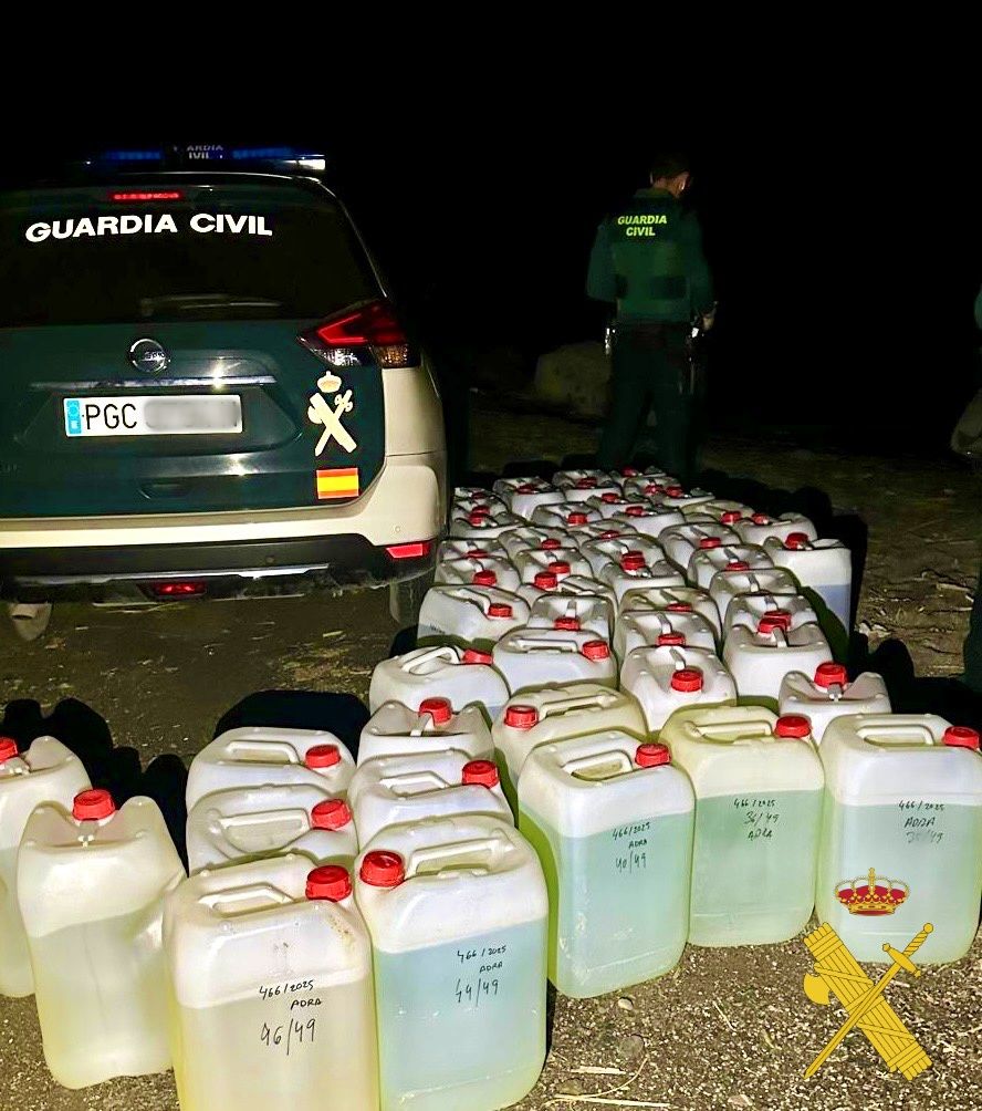 Durante la operación, los agentes localizaron y aprehendieron un total de 4.750 litros de gasolina, distribuidos en 190 garrafas, que presuntamente iban a ser utilizados para abastecer a embarcaciones empleadas en actividades ilícitas en la costa de Almería.