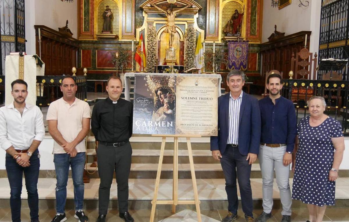 Como cada 16 de julio, Adra rendirá honores a la Virgen del Carmen. La patrona de los marineros celebrará su festividad con una programación religiosa ... que dará comienzo el día 12 con la lectura del pregón, que correrá a cargo de Francisco Avilés. La organización corre a cargo de la parroquia de Adra y de la Hermandad de la Virgen del Carmen y cuenta con el apoyo del Ayuntamiento.
