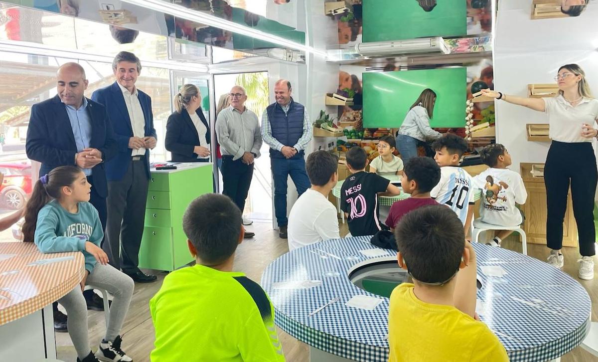 El alcalde y el delegado, acompañados de concejales del equipo de Gobierno, han hecho un recorrido por el interior del aula móvil, junto a escolares del CEIP San Nicolás, conociendo de primera mano las actividades y juegos educativos que llevan a cabo para que los niños y niñas adquieran conocimientos sobre un estilo de vida beneficioso.
