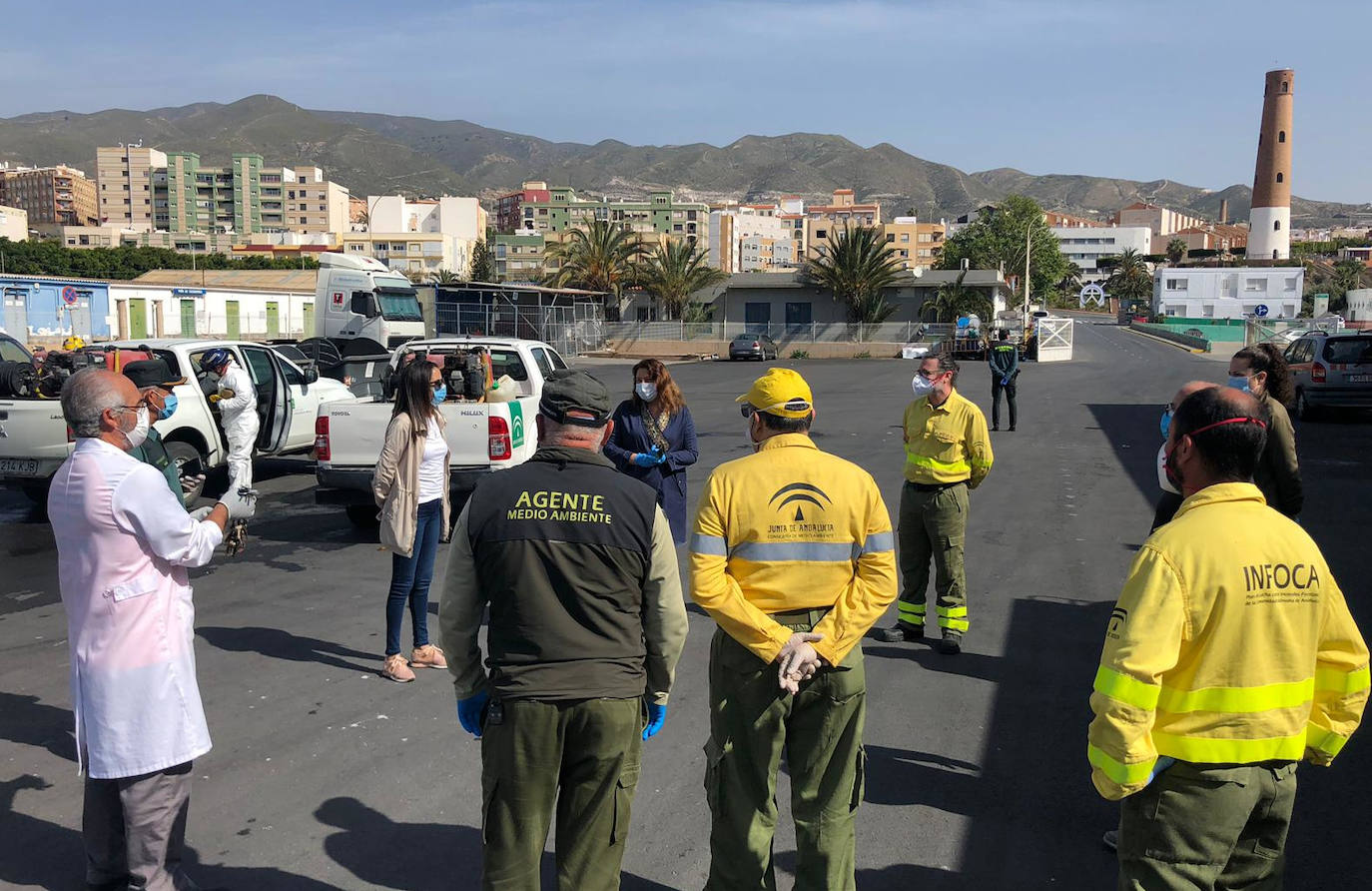 El Infoca lleva a cabo tareas de desinfección en una decena de centros públicos y espacios de Adra, en una actuación encuadrada en las tareas ... que la Consejería de Agricultura, Ganadería, Pesca y Desarrollo Sostenible ha llevado a cabo en 200 municipios de Andalucía para frenar la propagación del coronavirus Covid-19. Así, desde que se activó este dispositivo excepcional el pasado 2 de abril han participado 1.500 profesionales en estas labores, que se centran en espacios públicos y edificios sensibles por ser puntos de tránsito de personas. En total, se han utilizado ya alrededor de 160.000 litros de mezcla desinfectante, tal y como ha informado Carmen Crespo.