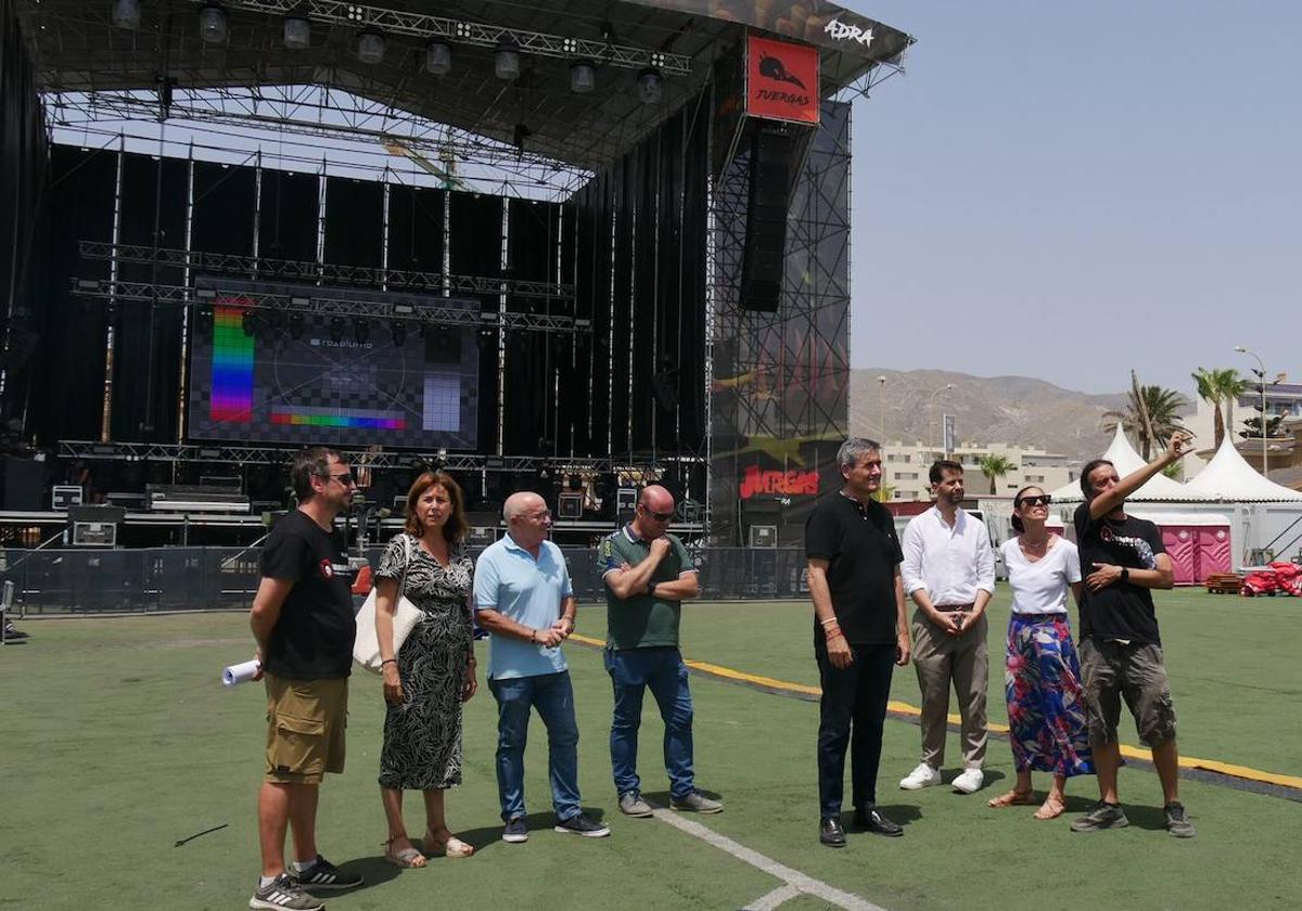 Alrededor de 40.000 'juerguistas' visitarán el recinto de conciertos de forma escalonada, según las previsiones. El escenario principal se ubica junto a la playa de El Censo, muy cerca de la zona de acampada de uso gratuito y la parcela 'glamping'. Todo está listo para que la música empiece a sonar, casi de forma ininterrumpida. El regidor abderitano, durante su visita hoy al recinto, ha destacado la «gran coordinación entre el Ayuntamiento y la empresa organizadora» para llevar a cabo los trabajos de montaje, instalación de equipamiento y acondicionamiento». Ha subrayado el «esfuerzo» de todos los trabajadores. Los operarios municipales se han encargado de desarrollar tareas de refuerzo en la limpieza, desbroce y nivelación de los terrenos destinados a las zonas de acampada. Los empleados de la empresa organizadora del evento también están trabajando «sin descanso» durante los últimos días.