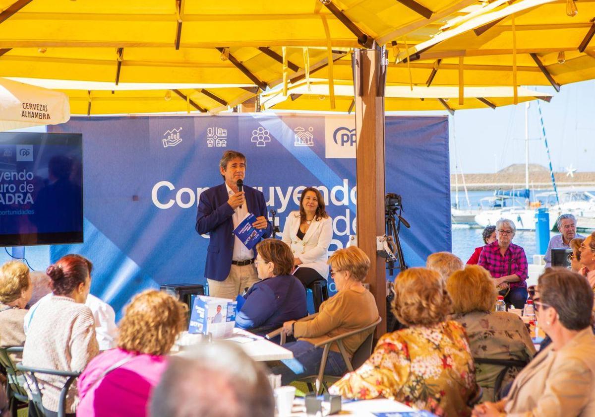El candidato a la alcaldía estuvo acompañado por Carmen Crespo, presidenta del PP en Adra