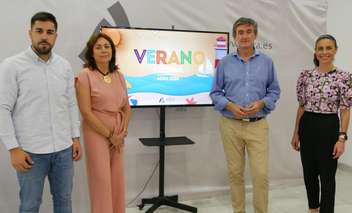 El alcalde de Adra, Manuel Cortés, y la concejala de Cultura, Elisa Fernández, junto a los ediles de Juventud y Presidencia, Antonio Sánchez y María ... Paz Fernández, han presentado la Agenda Cultural de Verano para esta época estival. Más de 60 propuestas de cultura y deportes que amenizarán las calles de Adra y sus barriadas durante los meses de julio y agosto. Propuestas dirigidas «para toda la familia» y que «harán disfrutar a abderitanos y visitantes de un verano memorable».