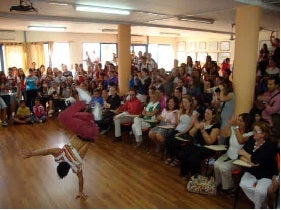 En la mañana de ayer, una representación del musical presentó la actuación en el IES Abdera, acompañados por el concejal de Cultura, Moisés Linares, revolucionando a alumnos y profesores con sus ritmos.
