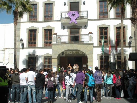 Decenas de alumnos de los tres institutos de Adra (Virgen del Mar, Gaviota y Abdera) han conmemorado hoy el Día Internacional de la mujer con un sencillo acto que se ha celebrado en la Plaza Puerta del mar, frente al Ayuntamiento, donde han reivindicado la igualdad de derechos entre hombres y mujeres.