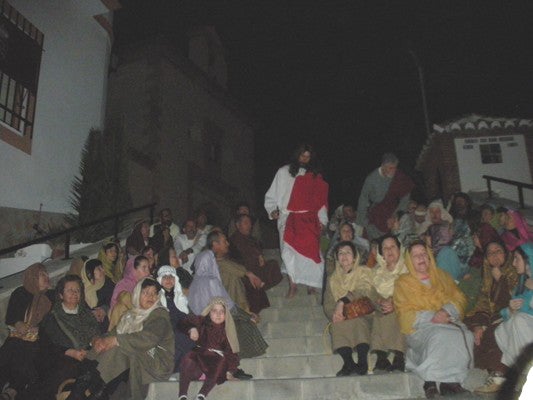 Durante las últimas semanas se ha estado trabajando duro para ultimar los diálogos, la música, el vestuario, los decorados y demás detalles que trasladan al ... espectador hasta los tiempos de Jesús de Nazaret, con efectos especiales que sobrecogen al público, sobre todo en el momento de la crucifixión, con un juego de luces y truenos que estremece casi tanto como la escena en la que la virgen María llora la muerte de su hijo con su cuerpo en los brazos tras bajarle de la cruz.