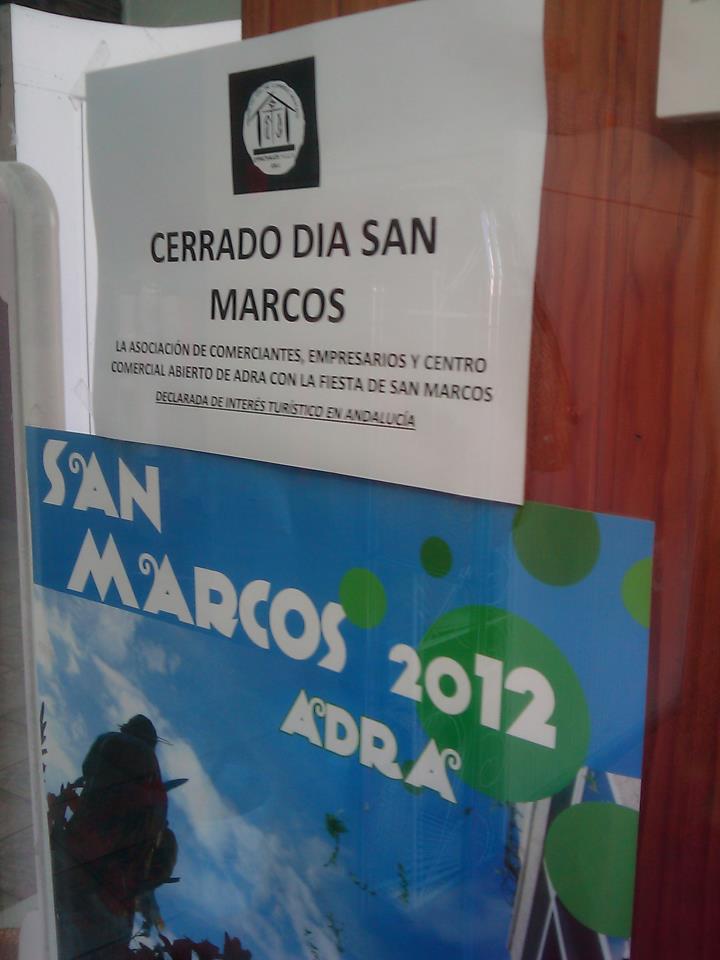 De hecho desde la asociación de comerciantes, empresarios y centro comercial abierto de Adra se ha enviado una circular a sus casi 100 socios para ... que no abran sus negocios y se sumen a la jornada festiva. De hecho en muchas tiendas hoy ya se podía ver en los escaparates que mañana, día de San Marcos, estará cerrado.