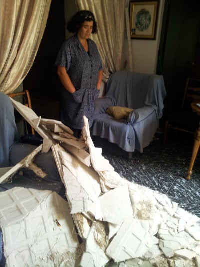 Y nunca mejor dicho, ya que en la madrugada del pasado viernes, esta familia, en la que ni el marido ni la mujer tienen trabajo fijo, y con dos niños, de 12 y 15 años, tuvieron un súbito despertar cuando sobre la una y diez de la madrugada escucharon un tremendo golpe. «Se nos cayó parte de la escayola del techo. Sonó muy fuerte, nos asustamos. Los niños se levantaron llorando, vimos todos los cascotes en el suelo, se rompió la lámpara, un mueble y un jarrón. Avisamos a una vecina, y vinieron los Servicios Sociales del Ayuntamiento y Protección Civil, que cuando vio el resto de techos de la casa nos dijo que no podíamos quedarnos ahí, que había peligro de que se nos cayera encima».