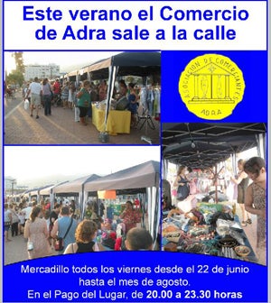 La Asociación de Comerciantes, Empresarios y Centro Comercial Abierto de Adra va a organizar durante todos los viernes de junio julio y agosto, un mercadillo en el Pago del Lugar.