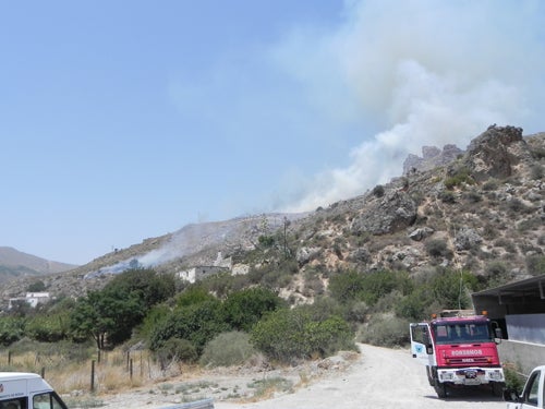 Efectivos del plan para la lucha contra incendios forestales de la Junta de Andalucía, el Plan Infoca, han acudido a sofocar un fuego declarado en el Paraje Virgen del Carmen, situado en la pedanía de Río Chico en Berja (Almería) donde este lunes se celebran festejos en honor a la virgen del mismo nombre.