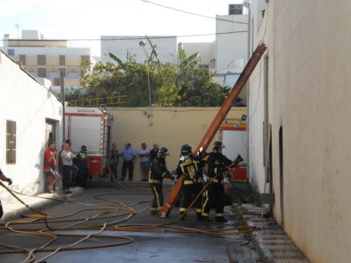 Un fuerte incendio quema gran parte de una carpintería de La Curva, en Adra