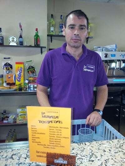 ?Lo hablamos mi pareja y yo y lo decidimos, había que arriesgarse, la gente nos decía que si estábamos locos, que era una época mala, con la crisis y eso, pero teníamos que probar, era lo que queríamos, teníamos ganas de tener algo propio. Escogimos este sitio porque es céntrico, frente al torreón de Natalio Rivas, por eso el bar se llama La muralla.