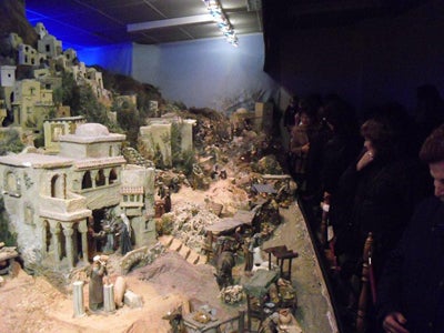 El Belén Municipal, montado por técnicos municipales, contiene unas 200 figuras y recrea algunas de las tradiciones más importantes de la historia de Adra, como la 'matanza', labores de sembrado en el campo o aparejos de labranza.
