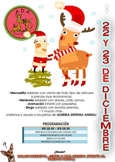 La asociación protectora de animales, Almería Defensa Animal está celebrando este fin de semana un mercado benéfico en el salón municipal, además de otras actividades, junto al IES Abdera y el Pabellón de Deportes.