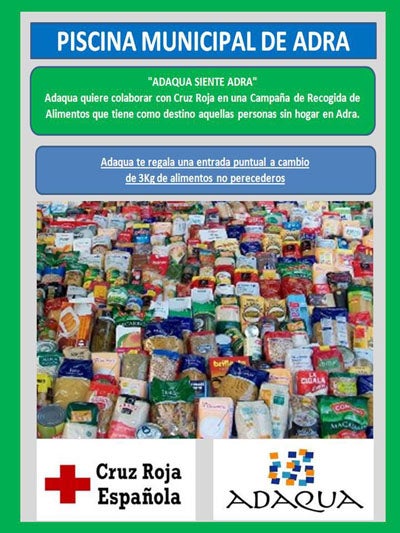La asamblea local de esta ONG ha colocado en el interior de la piscina un stand para la recogida solidaria de alimentos no perecederos que estará disponible hasta este próximo domingo. Esta acción significa también que las personas no abonadas de la piscina que lleven tres kilos de alimentos no perecederos a Cruz Roja tendrán entradas de regalo para la instalación en días puntuales.