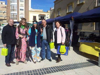 Los comerciantes además se han sumado a la fiesta de carnaval y se han disfrazado de hippies de los años 60.