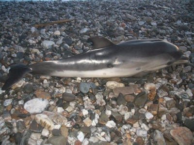 Una cría de delfín listado ha aparecido muerto en una playa de Adra, por causas que se desconocen.