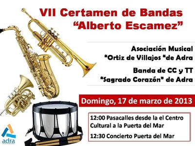 El domingo seguirán los actos de este fin de semana con el VII Certamen de Bandas 'Alberto Escámez'. A las doce de la mañana habrá ... un pasacalles desde el Centro Cultural hasta la Puerta del Mar y a partir de las doce y media de la mañana, tendrá lugar el propio certamen, con la actuación de la Asociación Musical Ortiz de Villajos y la Banda de Cornetas y Tambores 'Sagrado Corazón de Adra'.