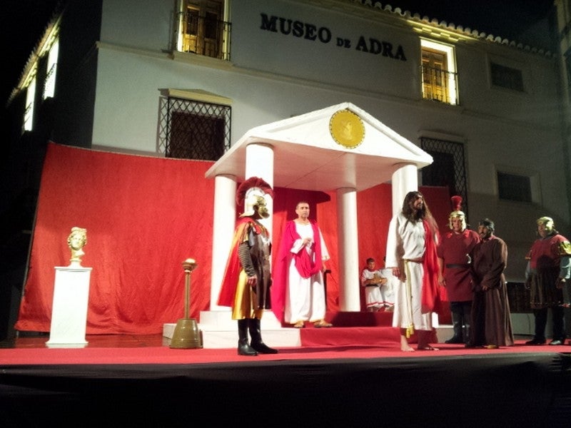 Anoche se volvió a vivir un día mágico en Adra con la representación de la 'Pasión de Cristo'. Uno de los rincones más emblemáticos de la ciudad de abderitana, como es la Plaza de la Ermita de San Sebastián y las casas barrocas que en ella se ubican, fue el lugar escogido para celebrar la escenificación de 'La Pasión de Cristo'.