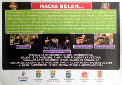 Según informa la asociación Talia en su blog, esta actuación está enmarcada en el programa cultural que bajo el título de "Hacia Belen..." ha impulsado el área de cultura de la Diputación de Almería con el objetivo de implicar a las asociaciones y colectivos de los municipios a participar en una Navidad solidaria.