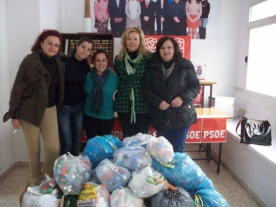 Los tapones se pueden dejar en numerosos comercios de Adra, como Pizzería Voy Volando, y ahora el PSOE de Adra le ha hecho entrega de un buen montón que sumarán para que Juan Manuel pueda seguir con su tratamiento.