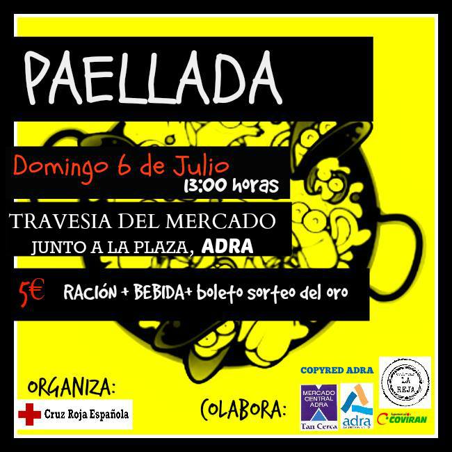 La asamblea local de Cruz Roja Española en Adra ha organizado para el próximo domingo una 'paellada' en la calle Travesía del Mercado. La intención es recaudar fondos a través del Sorteo del Oro que tendrá lugar el 17 de julio. Participar apenas cuesta cinco euros. A cambio, Cruz Roja invitará a los asistentes a un plato de paella, una bebida, una ensalada y, de postre, melón. La iniciativa, que comenzará a la una del mediodía, cuenta con el respaldo del Mercado Central de Adra y de supermercados Covirán que facilitarán los alimentos de forma altruista. Asimismo, la empresa Copyred ha financiado la elaboración de la cartelería usada para promocionarla. Por su parte, el Ayuntamiento de Adra ofrecerá las sillas, mesas y barras que se instalarán en la calle Travesía del Mercado que, asimismo, permanecerá cortada al tráfico para garantizar la seguridad del evento.