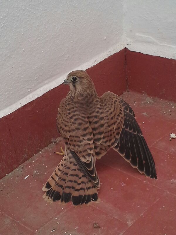 Hallan un cernícalo en el patio de una vivienda