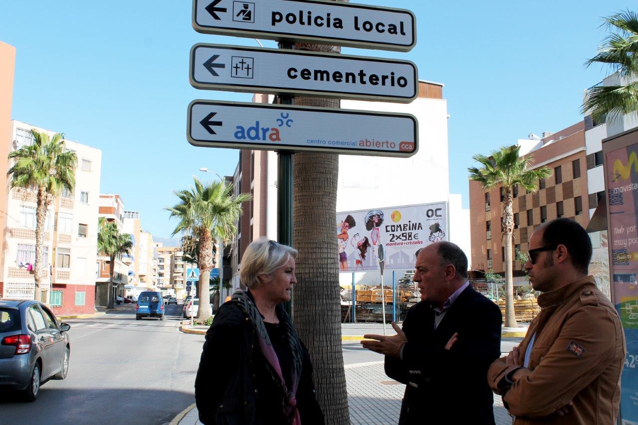 Su presidenta, Mari González, conoció ayer el resultado del proyecto. Acompañó al alcalde, Enrique Hernando, en su visita a las principales vías comerciales para conocer la nueva señalización. A juicio del primer edil, estas actuaciones «potencian» el pequeño comercio abderitano y sirven de «aliciente» para el sector turístico. «Tenemos calles, comercios y zonas más accesibles, lo que posibilita que todos los ciudadanos que paseen por nuestras calles comerciales tengan toda la información necesaria de nuestro Centro Comercial Abierto, con una propuesta que incita al paseo y a las compras», afirma. Hernando estuvo acompañado por Moisés Linares, edil de Comercio en el Ayuntamiento de Adra. El proyecto para la señalización del Centro Comercial Abierto de Adra ha costado más de 60.000 euros.
