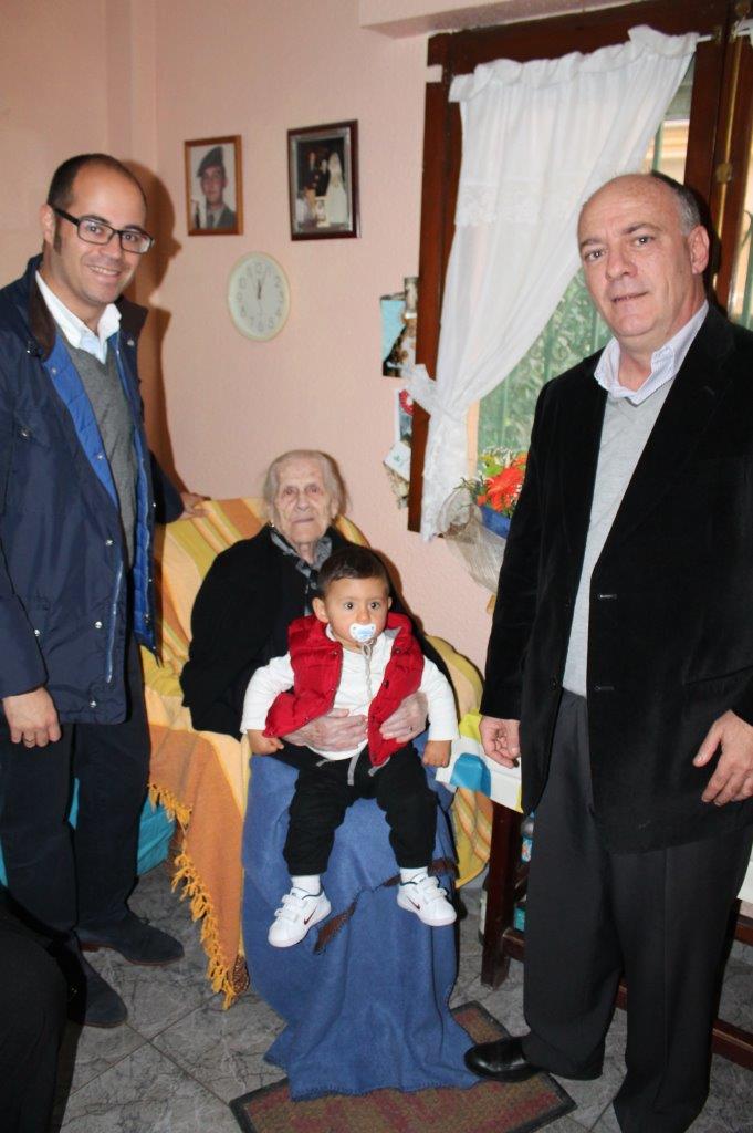 El alcalde, Enrique Hernando, y el edil Moisés Linares, han felicitado personalmente a esta abderitana centenaria en su cumpleaños. El regalo, un ramo de flores.
