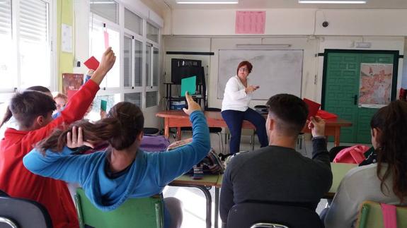 Aunque la actividad se intensifica con motivo del día contra la violencia de género, la lucha contra el maltrato se combate a lo largo de todo el año en el IES Virgen del Mar. «Se concibe como una asignatura trasversal que está presente en todas las clases», explica la responsable del Plan de Igualdad vigente. El centro dedica cada mes a trabajar la trayectoria de dos mujeres especialmente relevantes para la historia y dos valores. Este mes es el turno de Marie Curie, premio Nobel de Física y Química, y de Olympe de Gouges, escritora y autora de la Declaración de los Derechos de la Mujer y de la Ciudadana. Lo es también de la entrega y del trabajo. Asimismo, el alumnado está realizando pequeños trabajos de investigación relacionados con las mutilaciones, la trata de blancas o los mitos que rodean una relación emocional entre adolescentes. Actualmente se ha registrado un repunte de machismo entre adolescentes.