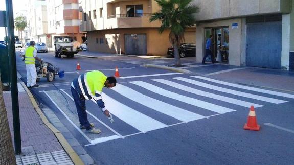 Actualmente se ha retomado el pintado de algunos pasos de peatones ubicados en las zonas de mayor tránsito de vehículos como Avenida del Mediterráneo o Carretera de Almería. Se actuará en una treintena de ellos, según viene recogido en el Plan de Tráfico vigente. «Los operarios municipales están utilizando una pintura específica para asfalto, a la que se añade un producto especial reflectante para que los pasos de peatones ganen visibilidad durante la noche», informan desde el Consistorio. Además, se ha comenzado a usar «de forma experimental» pintura reflectante en algunas señales verticales.
