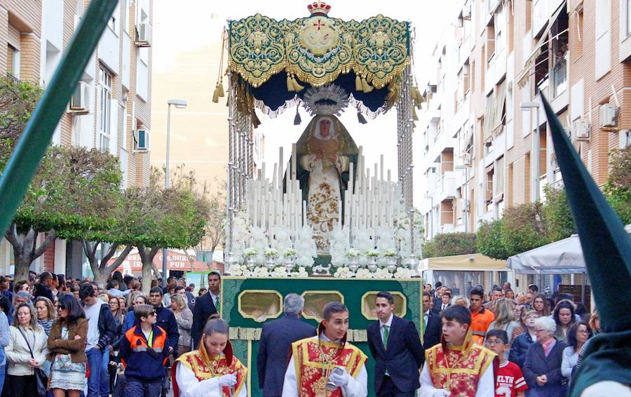 La Virgen de la Esperanza salió ayer a las calles de la ciudad de Adra con su paso de palio cargado de novedades. A partir ... de las seis de la tarde del Domingo de Ramos, la Hermandad de la Humildad y Esperanza tomó protagonismo en el segundo desfile procesional de Semana Santa abderitana con la salida de su paso de palio desde la Iglesia Parroquial de la Inmaculada Concepción.