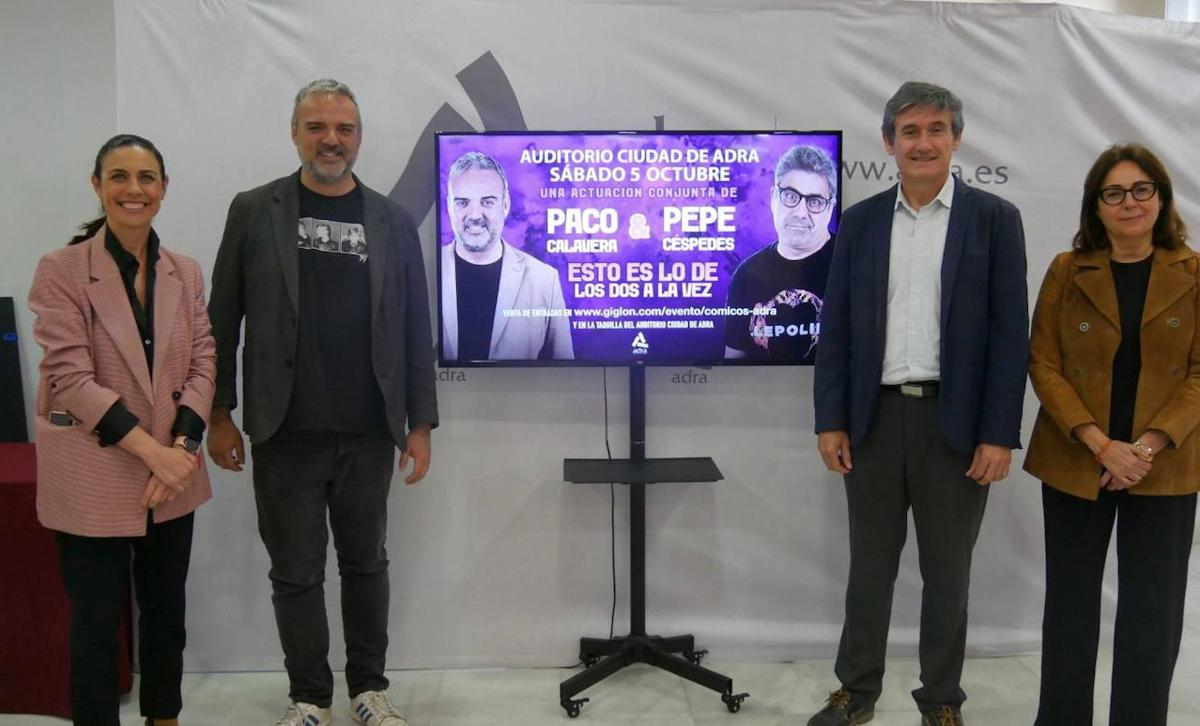 El Ayuntamiento de Adra presenta una nueva cita cultural que aterriza en la ciudad milenaria el próximo 5 de octubre de la mano de Paco ... Calavera y Pepe Céspedes y su espectáculo 'Esto es lo de los dos a la vez'. Una actuación conjunta que podrán disfrutar abderitanos, abderitanas y visitantes en el Auditorio Ciudad de Adra a partir de las 21:00 horas y para la que ya están a la venta las entradas en la web de www.giglon.es y en taquilla desde tan solo 12 euros.