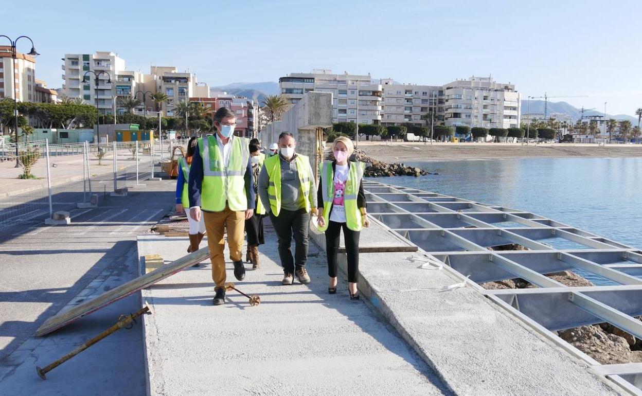Según ha declarado, las obras se están desarrollando «según los plazos previstos». «Antes de la época estival, abderitanos, abderitanas y visitantes podrán disfrutar de esta parte de su Puerto, uno de los puertos más importantes de Andalucía, de ahí el inmenso trabajo que estamos haciendo desde las consejerías de Fomento y de Agricultura y Pesca», ha dicho. La de Adra será no será una pasarela al uso. Construida sobre una superficie de 1.500 metros cuadrados, se ha concebido como una «prolongación volada del contradique». A lo largo del recorrido, hay «quiebros» que se vuelcan hacia el mar y que se apoyan en muros de hormigón.