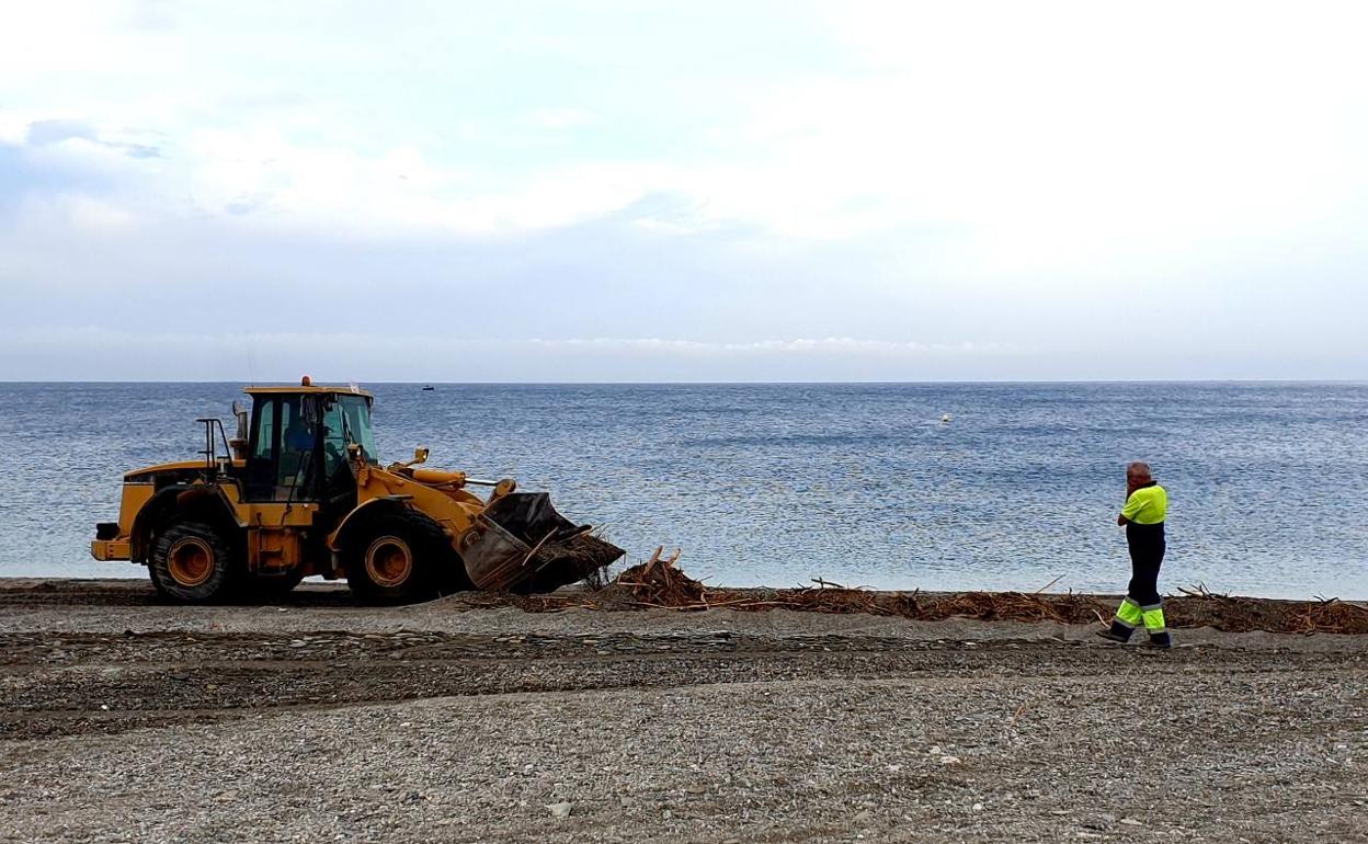 Desde ayer, operarios de limpieza se afanan en limpiar la orilla para que los bañistas aún puedan disfrutar de las playas urbanas más frecuentadas. No obstante, la temporada de baño concluyó oficialmente el pasado domingo. En otros municipios cercanos de la Costa Tropical, como Albuñol, también se realizan tareas similares.