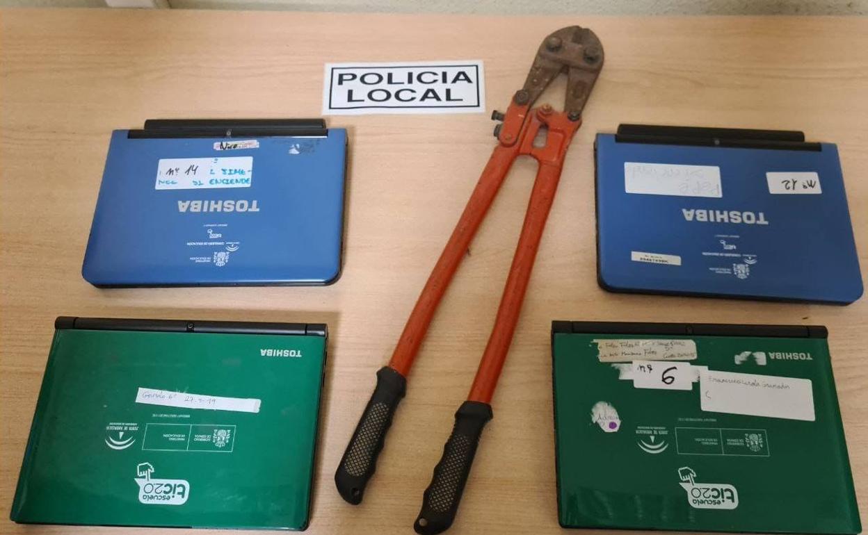 La Policía Local de Adra detiene a una persona con cuatro ordenadores escolares