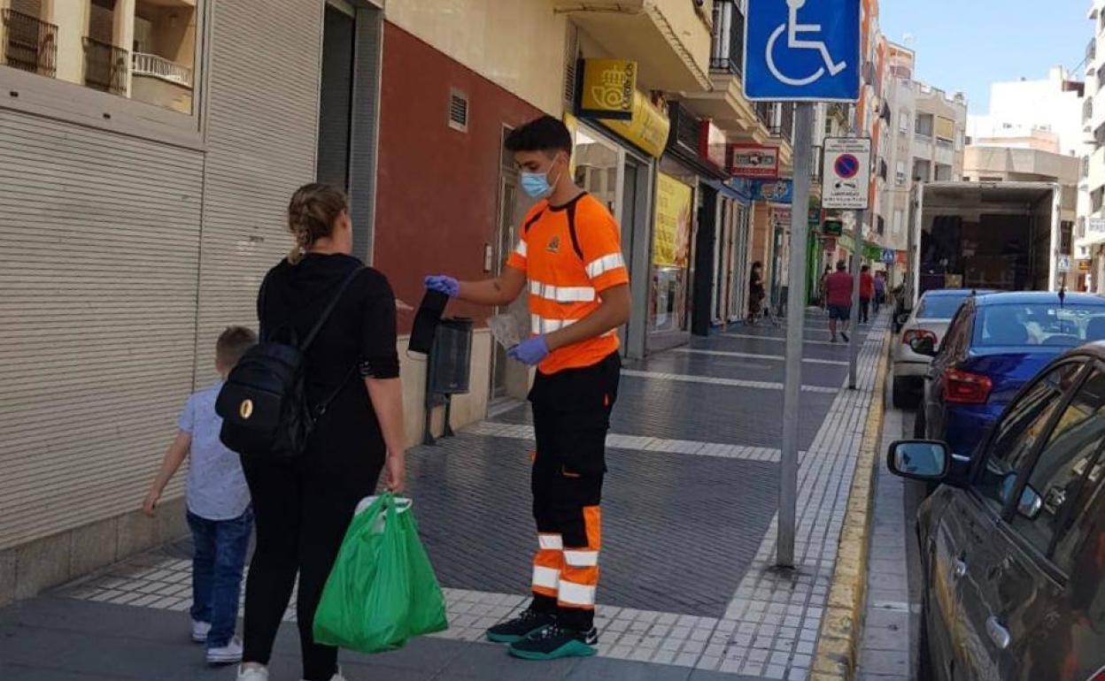 Reparto de mascarillas a pie de calle en Adra