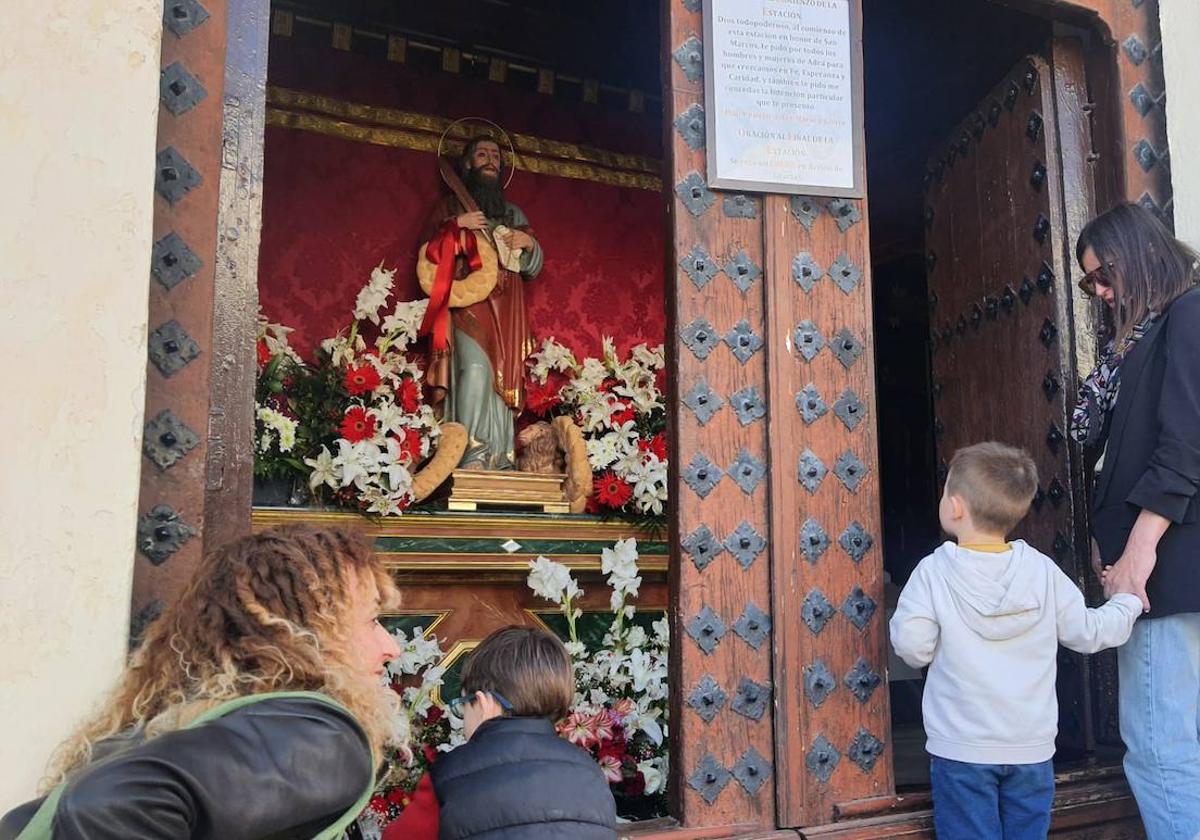 Estos últimos son todo un reclamo. Se pueden adquirir en varios puntos a lo largo del recorrido y no importa la espera. Al sabor tradicional de los buñuelos de toda la vida, se suman ahora también bombas de chocolate, de fresa, de crema pastelera y hasta de higo. Los hay también para celíacos. Mientras unos esperan su turno para hacerse con ellos, otros rezan a San Marcos. La talla permanece postrada en uno de los laterales del templo parroquial para recibir los donativos y las plegarias de vecinos y visitantes. Las calles y balcones se mantienen engalanadas con motivos relacionados con la festividad.