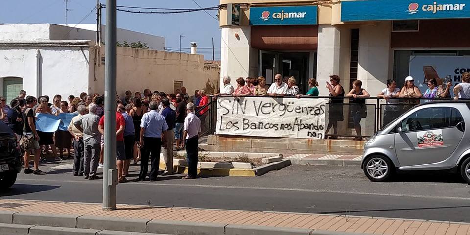 Los vecinos de Puente del Río se han echado a la calle para pedir la reapertura de la única oficina bancaria que quedaba en la ... pedanía abderitana.