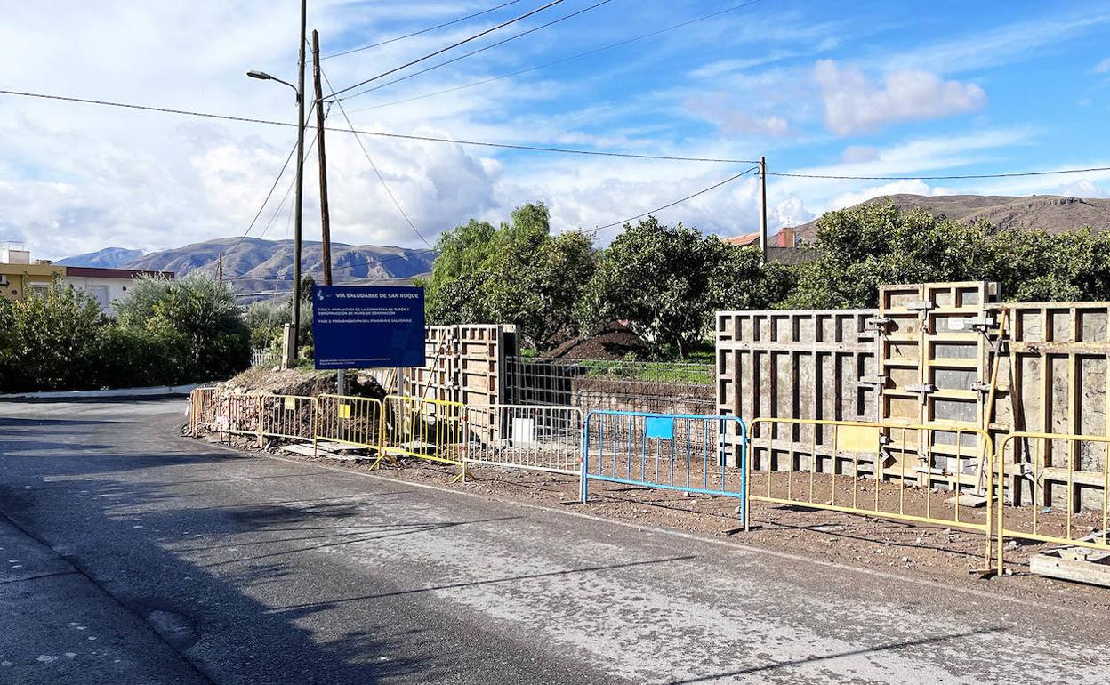 Las obras están financiadas íntegramente por el Ayuntamiento de Berja. «Actualmente se centran en la construcción de un muro de contención de hormigón armado en las dos parcelas con las que se ha ampliado la superficie de la vía y que supera los cien metros», informó. Tras estos primeros trabajos, se continuará con la construcción del acerado de un metro y ochenta centímetros, que contará con las canalizaciones necesarias para servicios como la red de telefonía.