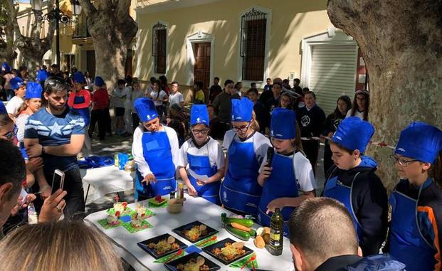 El Paseo Cervantes se convirtió en una improvisada cocina el pasado 10 de abril. Ocho clases de cuatro centros distintos lograron colarse en la final y medir sus conocimientos culinarios. El programa, que ha implicado a 2.000 escolares de Berja en su duodécima edición, se celebra con el único propósito de incentivar hábitos de vida saludables entre los más pequeños.