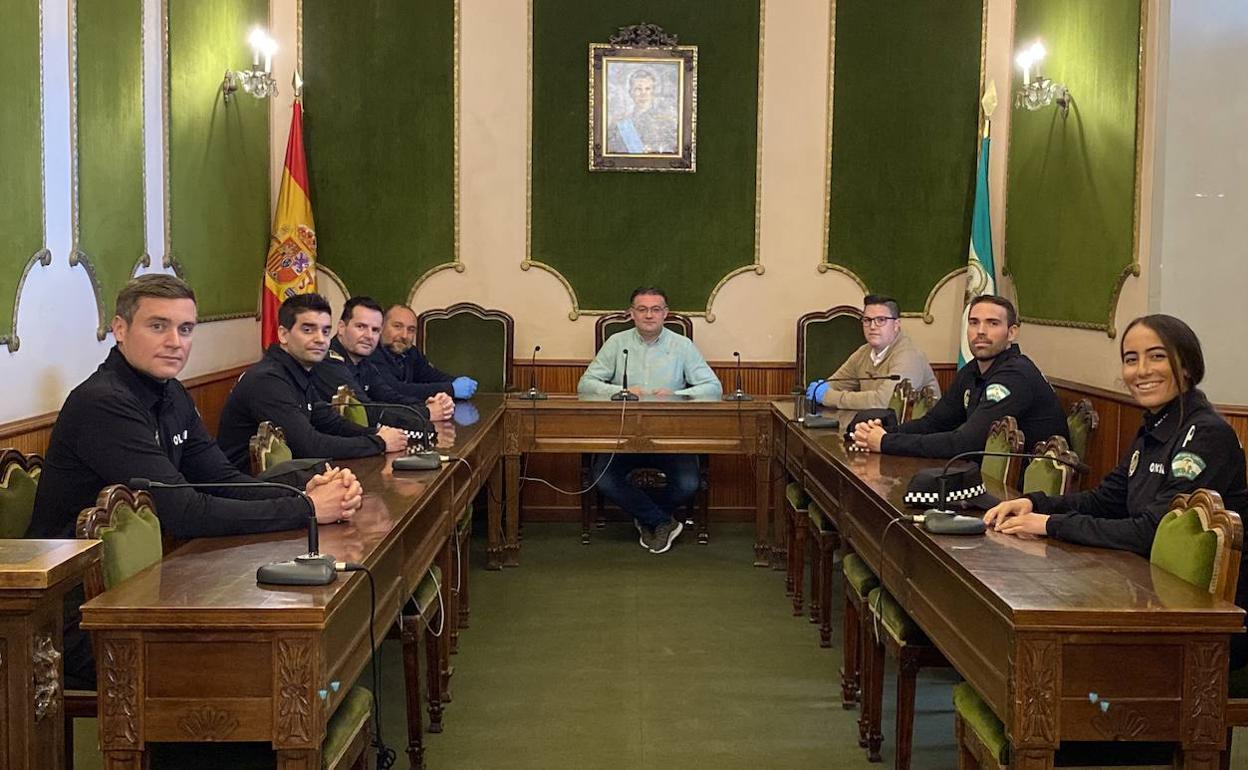 El alcalde de Berja, José Carlos Lupión, ha recibido oficialmente a los agentes que ya prestan servicio. Es el final de un proceso largo, que comenzó con la convocatoria de empleo público, la realización de las pruebas pertinentes y la selección final del personal. En plena crisis sanitaria provocada por el coronavirus, la Policía Local de Berja se refuerza de forma sustancial. Se encarga de velar por la seguridad de una población con más de 12.000 habitantes.